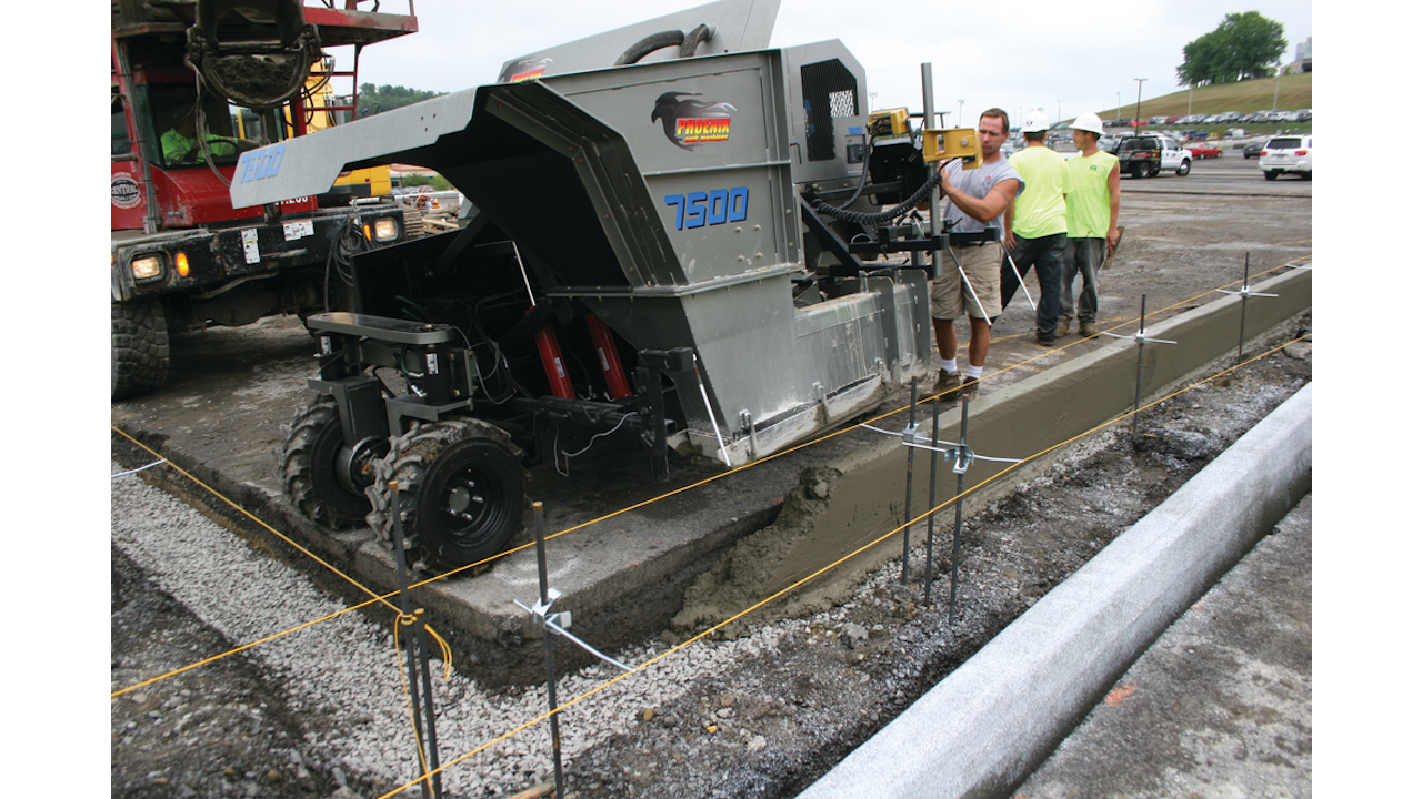Phoenix Slipform Curb Machine With Topcon System Installs Challenging Parking Lot Curb For Construction Pros