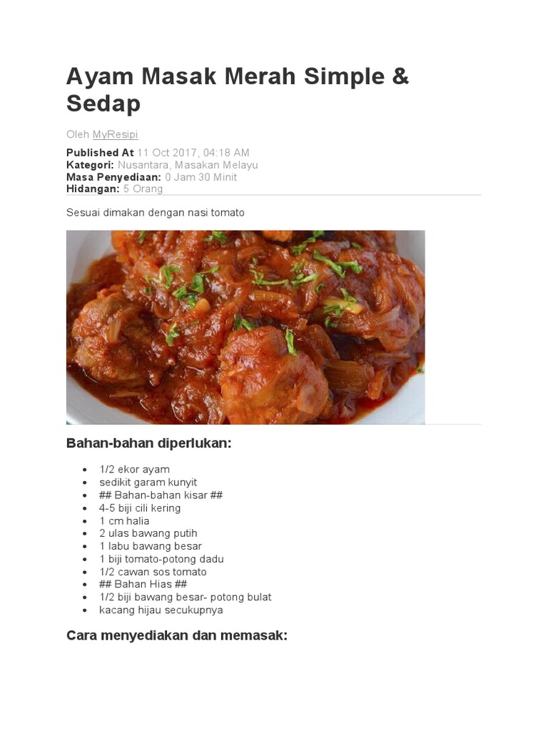Anda boleh mengubah sendiri bahan di dalam Resepi ayam masak merah sos tomato Kemudian tumis cili kering bersama daun kari hingga garing Untuk melihat lebih 1000 lagi video masakan. Tepat sekali Kami punya Resepi Ayam. Masukkan garam dan serbuk perasa dan gula.